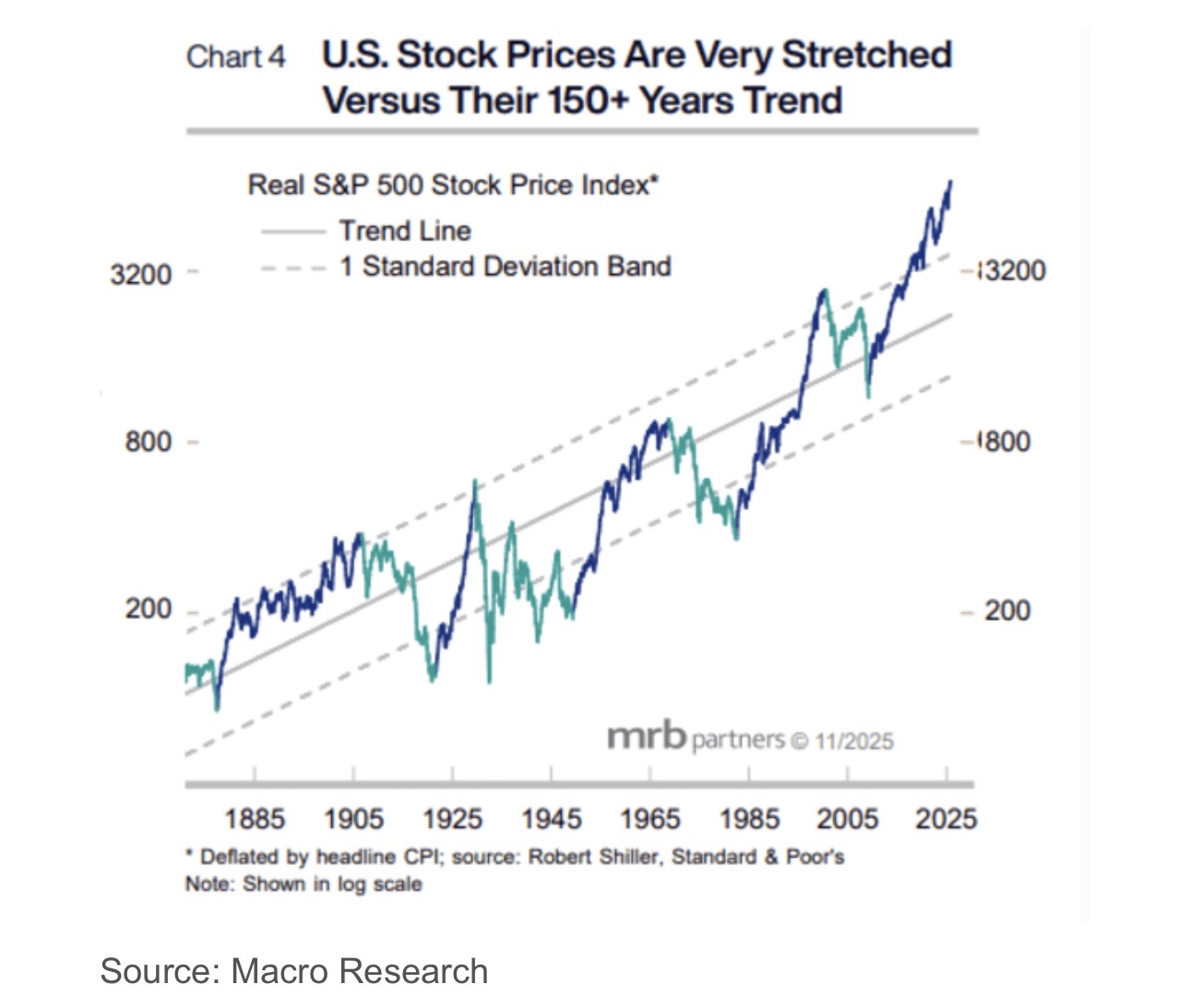 科尔马指出,问题在于其中一些趋势“现在已经见顶、接近尾声,甚至开始逆转”。例如,特朗普的贸易政策正在削弱全球化,而通胀和债券收益率持续四十年的下行趋势也已结束。他表示,这对那些估值较高的股市板块构成实质性威胁。