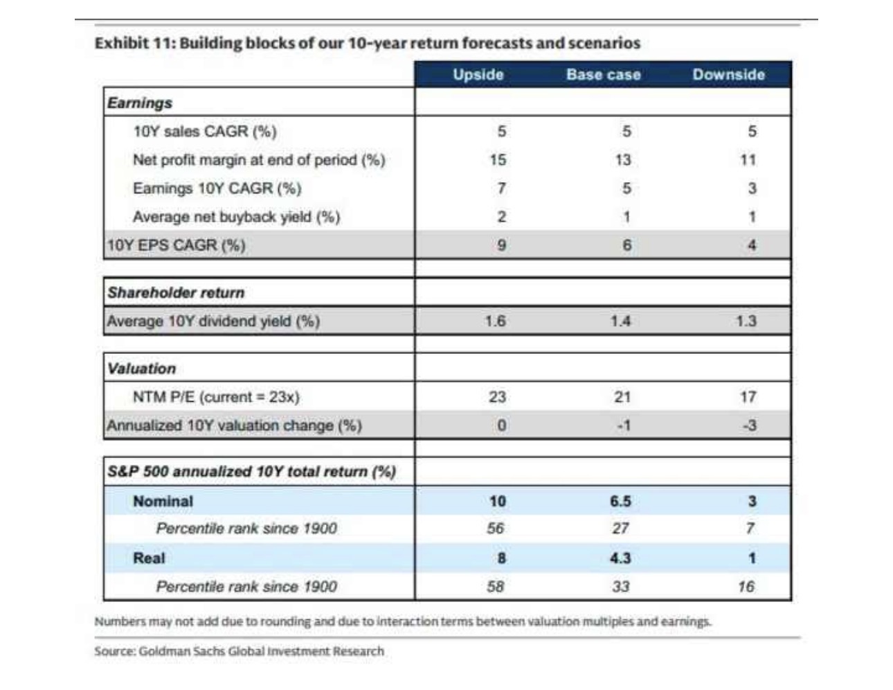 高盛团队表示,这一十年期预测考虑了悲观与乐观两种情形,预期区间为年化回报3%到10%。