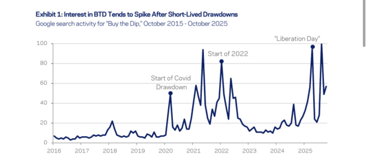 “逢低买入”,自新冠封锁以来已经深深刻在市场心理中。谷歌搜索的图表也体现了这种趋势。