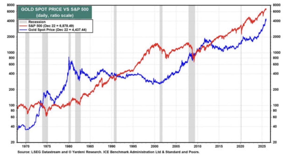 Yardeni指出,标普500指数与黄金在短期内走势呈反向关系,但长期来看都呈现上升趋势,因此他们对未来几年的看涨预期更加明确。
