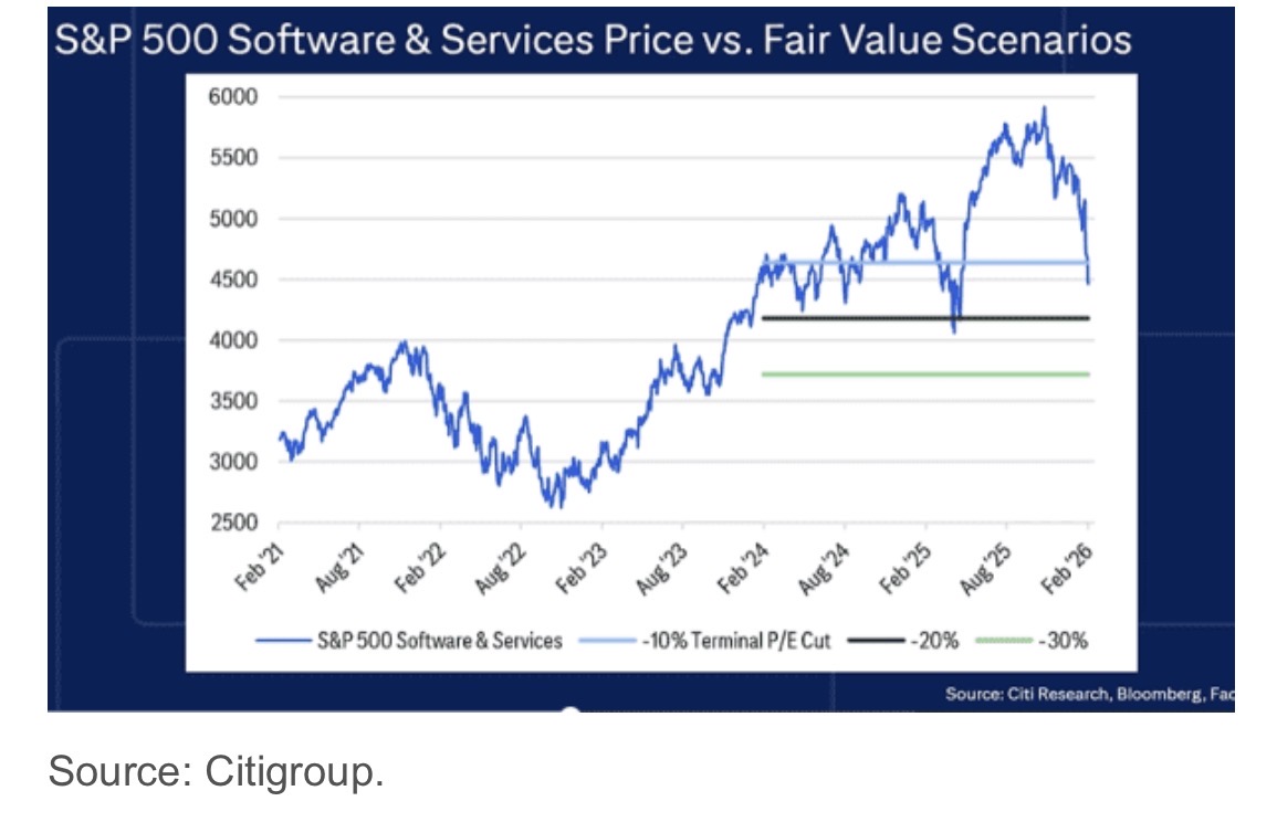 但如今,软件板块正面临挑战,因为“市场开始重新审视这些企业的终值”。