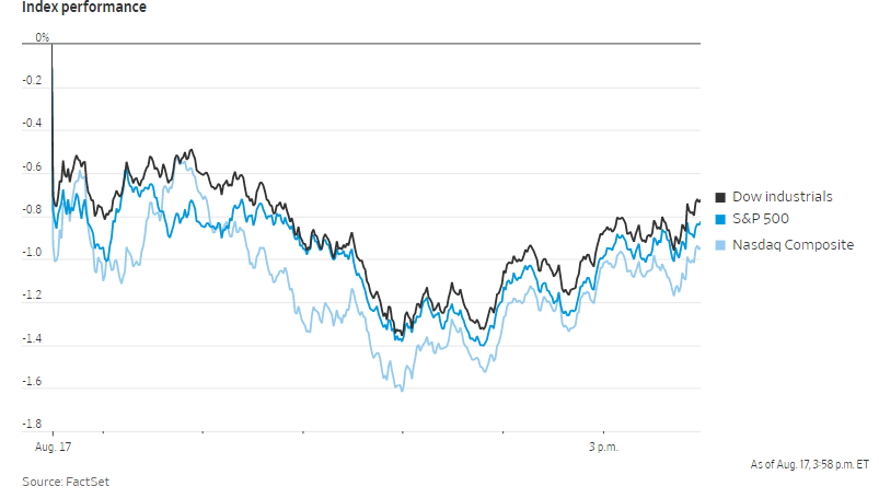 纳斯达克综合指数收跌0.9%,盘中跌幅一度超过1.4%,创下5月份以来的最大单日跌幅。罗素2000小型股指数下跌1.4%。