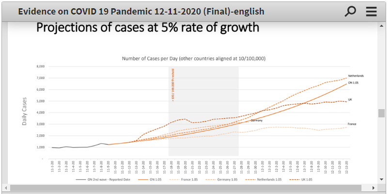 目前安省疫情正在不断恶化,长期护理院的老年人死亡人数每周都在增加。该省周四发布了最新模型,预测第二波疫情的进程。根据模型,如果不采取进一步行动,到12月中旬,安省每天新增病例将超过6500例。