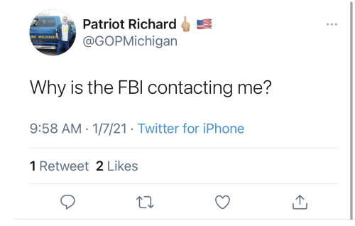 时隔十几个小时后,1月7日早上10点不到,这名推主又发了一条推文,非常简短,就一句话“FBI为啥找上了我?”