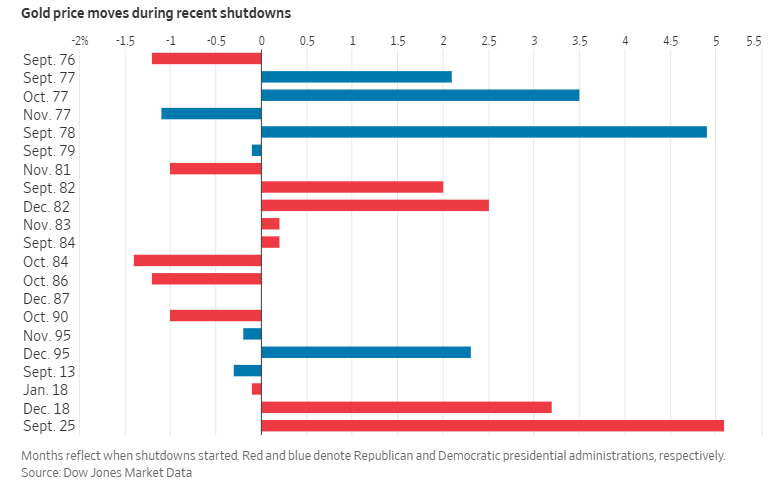 1008市场综述:逢低买入涌现,推动标普500和纳指又创新高,本次政府停摆期间黄金表现远超以往