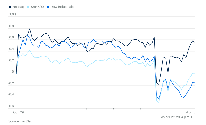 大部分交易时段,股市本来有望再次创下新高。直到美联储主席鲍威尔对下次会议降息的可能性表示怀疑:“在12月会议上进一步下调政策利率并不是板上钉钉的事情,远非如此。”