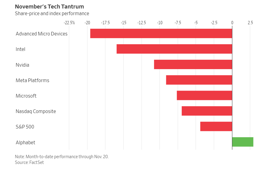 与此同时,股市交易者越来越担心大型科技企业在构建AI基础设施过程中所承担的杠杆风险,因为市场对AI泡沫的忧虑不断加剧。