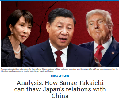 中日关系持续恶化,中国加大力度批评日本首相高市早苗针对台湾局势的最新言论。