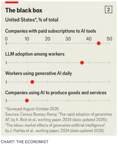 人工智能普及得快还是慢,将产生深远影响。要想让全球从AI中获得生产率提升,普通企业必须把这项技术纳入日常运营中。这也是判断当下是否存在“AI泡沫”的关键问题。