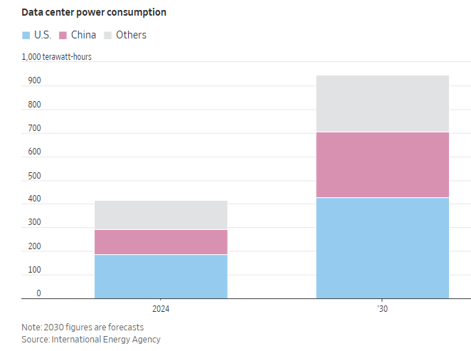 中美两国面临的共同挑战是,数据中心,尤其是人工智能所需的数据中心,正消耗越来越多电力,而最终需要多少电力仍难以预估。