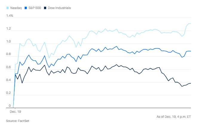 1219市场综述:人工智能绝地反击,美股三大指数假日前幸福上涨,防御板块下跌