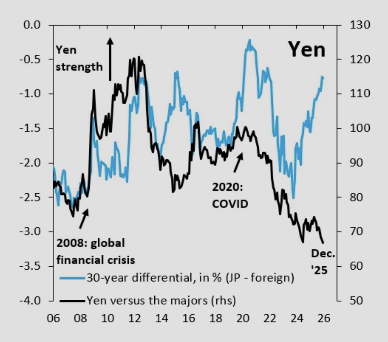 尽管利差确实大幅向日元有利方向移动,但也必须承认,考虑到日本庞大的政府债务水平,目前长期收益率依然远低于若日本银行不再大规模购买国债时可能出现的水平。
