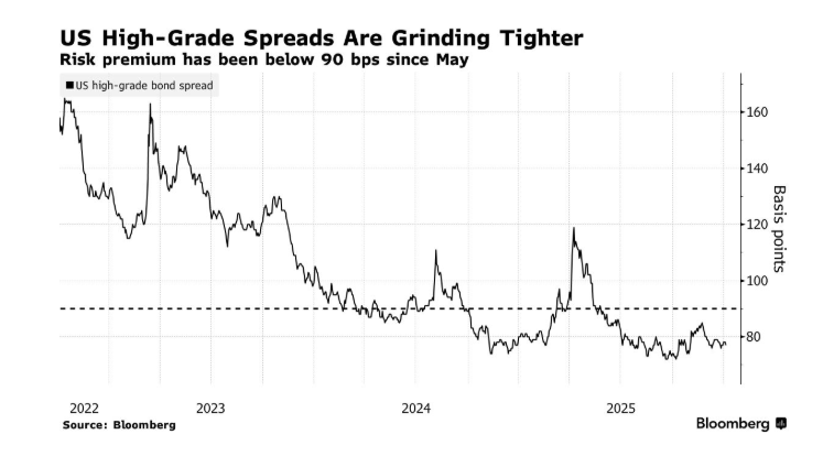 “当利差跌破90个基点时,我们就认为相对价值已经不再合理,”孔托波洛斯表示。美国投资级信用风险溢价周三回升至78个基点,自去年5月以来一直低于90个基点。孔托波洛斯表示,如果美联储降息的速度或幅度低于市场预期,利差今年可能会扩大。经济增长放缓幅度超出预期也是一项风险。