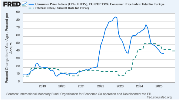 土耳其最近的经历更加值得警惕。埃尔多安强迫土耳其央行在通胀飙升时仍维持低利率,最终导致通胀率飙升至80%以上。