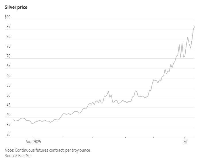 即使在芝加哥商品交易所集团宣布调整部分金属期货保证金要求后,白银仍持续上涨。芝加哥商品交易所集团周一发布的通知称,将要求投资者缴纳期货合约名义价值的一定比例,包括银、黄金、铂金和钯。这些变更将在周二营业结束后生效。