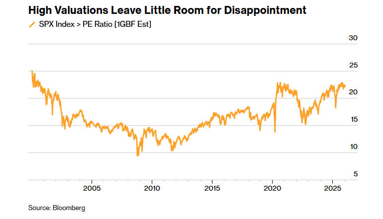 根据Ameriprise的安东尼·萨格利姆贝内的说法,标普500指数当前估值偏高,意味着成分公司必须达到或超越利润预期,并在未来几周内整体上确认或上调本季度盈利指引,才能维持股价上涨势头。他指出:“由于整体指数估值高于长期平均水平,我们认为每个财报季对盈利的要求都在提高。如果公司无法达到投资者期望,失望的风险也随之上升。”
