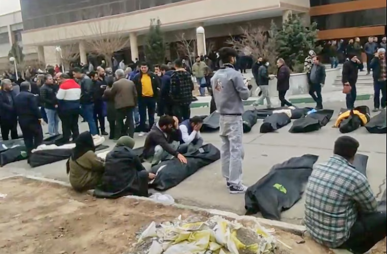 抗议仍在继续。社交媒体流传的多段视频画面(拍摄时间为1月9日至11日之间)显示,在德黑兰省卡赫里扎克郊区,一处停尸间内有大量尸体和前来悼念的民众。