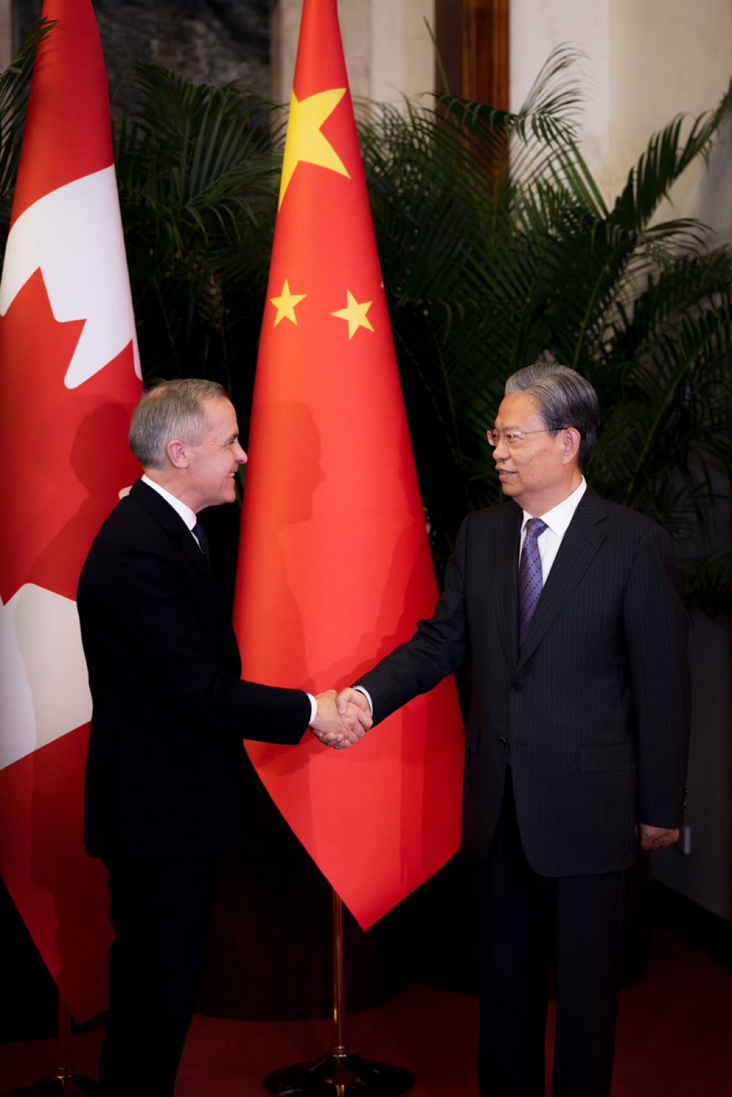 稍晚卡尼在X上发帖说:“感谢李总理对我在北京的热情欢迎。我们两国在许多领域高度契合,包括清洁能源、农业和金融。我们重点讨论了加拿大和中国如何携手合作,为两国建设更强劲、更具可持续性的经济。”