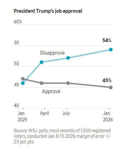 多数人表示不认可特朗普的执政重点,认为他并未真正关注中产家庭或“像你这样的人”。在被问及他是否把太多精力放在委内瑞拉、伊朗等国时,53%的选民认为他关注的是不必要的外交事务,牺牲了对经济的关注,只有42%认为他是在应对紧迫的国家安全威胁。