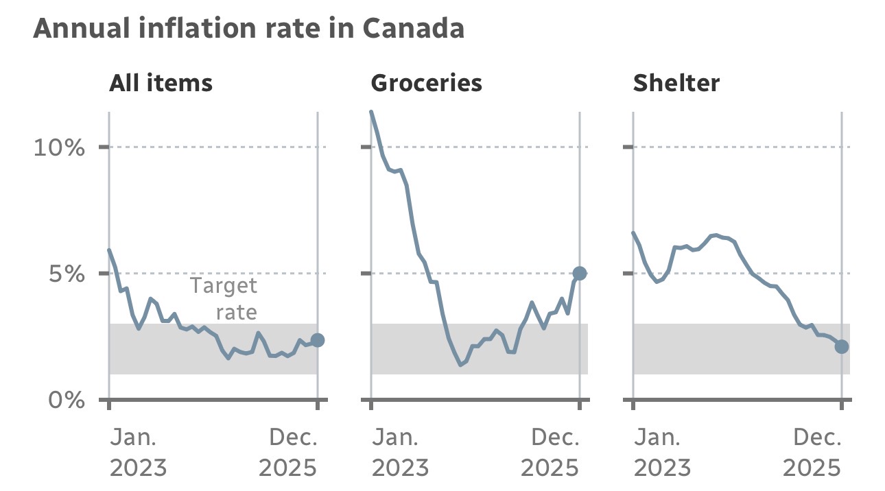 12月的通胀数据将是加拿大央行在下周作出本年度首次利率决定前的最后一组价格指标。去年12月,加拿大央行维持基准利率在2.25%不变。