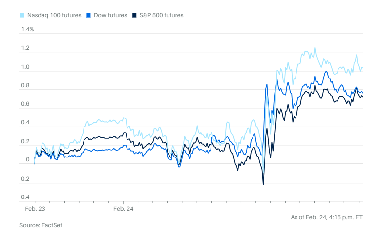 0224市场综述:科技股终于反弹,纳指领涨三大指数,市场等候英伟达财报