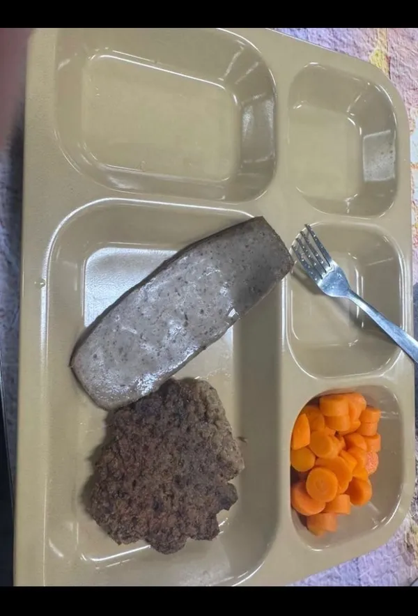 另一张由一名军人分享给家人的照片显示,四月中旬“亚伯拉罕·林肯号”上的晚餐同样令人难以下咽,只有一小把煮胡萝卜、一块干巴巴的肉饼和一块灰色的加工肉。