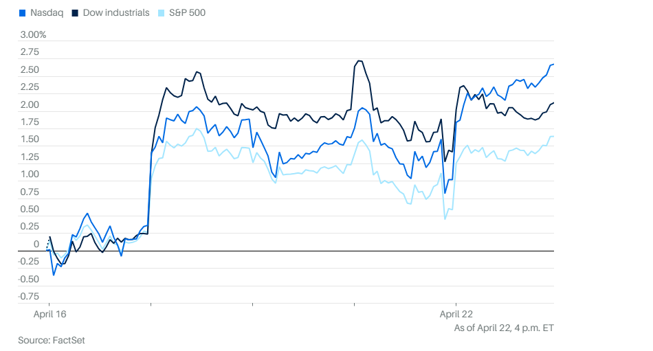 根据 FactSet 的数据,本季度已发布财报的标准普尔500指数公司中,约85%的业绩超出市场预期。即将公布的重要财报包括特斯拉和德州仪器。这些结果可能会决定市场的下一步走势,至少在美伊和平谈判出现重大进展之前如此。