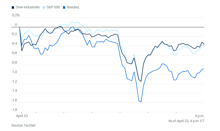 0423市场综述:中东局势依然紧张,油价高启,科技大公司业绩无法挽回三大股指下跌