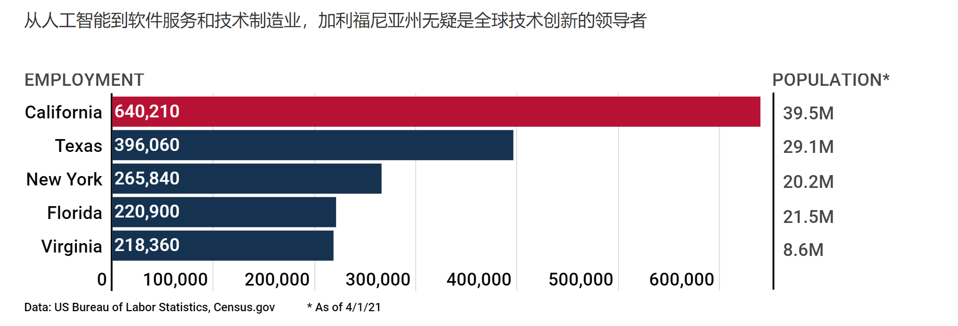不管这些趋势和疫情如何,加州在技术、生物技术、娱乐、制造业等就业方面继续领先于其他各州。