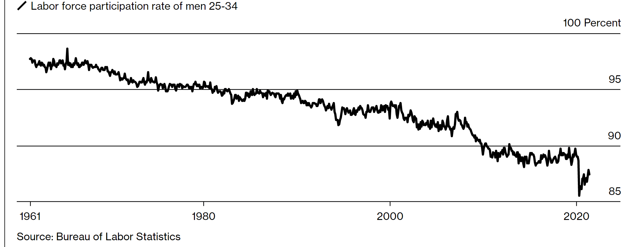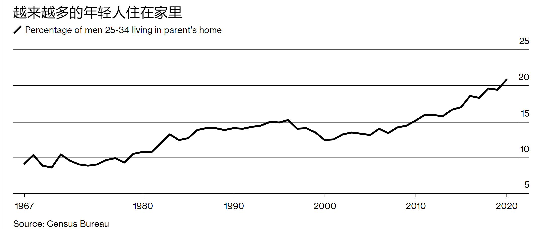 从这组数据中无法看出重叠的情况,就是有多少年轻男子住在父母家中,同时也不在劳动力队伍中。但毫无疑问,这其中存在着联系。父母家可以是一个避难所,但也是一个陷阱,使年轻男子无法启动他们的职业生涯。