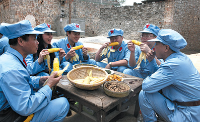 这些头上顶着红星八角帽的男男女女们,穿着浅蓝色或灰色束腰外衣和长裤,把自己打扮成20世纪30年代的士兵,成为了现代中国的一大景观。在中国南部被称为革命摇篮的井冈山革命根据地,可以看到他们沿着红军的补给小道气喘吁吁地前进。