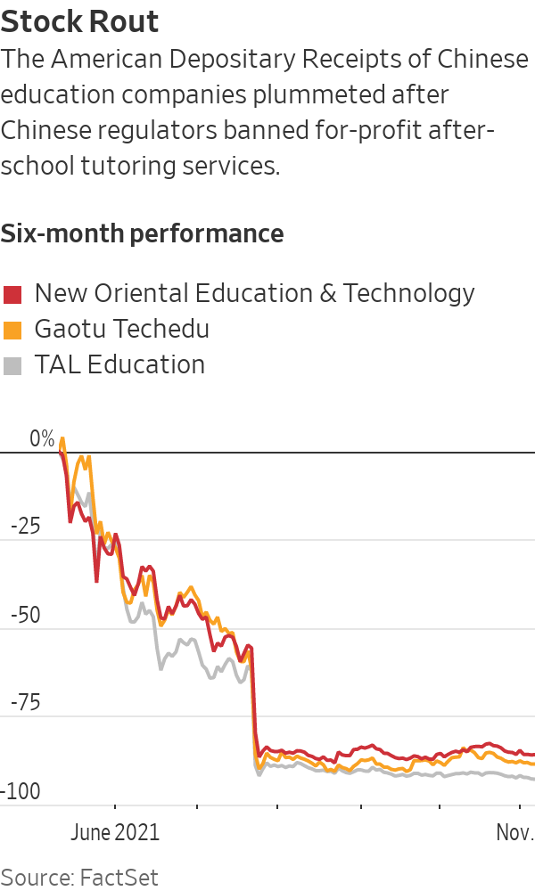 彭博社制图:中国教育公司的美国存托凭证价值大跳水