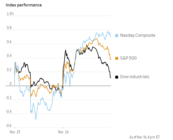 截至收盘,标准普尔500指数上涨0.4%,收于4700.9点,扭转了周一的跌势,但距离上周创下的4701.70点的纪录仍有一步之遥。道琼斯工业股票平均价格指数上涨了0.2%,该指数上周五天中下跌了三天。纳斯达克综合指数上涨0.8%。
