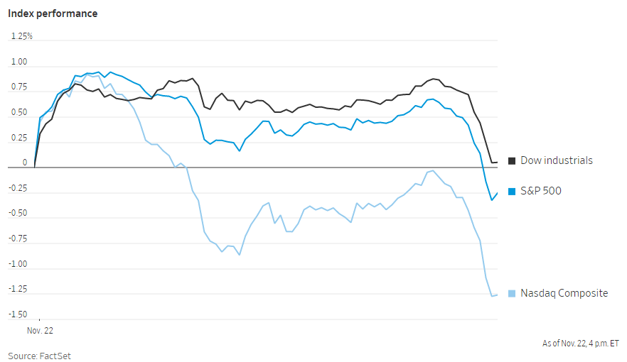 美股周一早盘在拜登提名杰罗姆·鲍威尔连任美联储主席的消息传出后上扬,但在尾盘出现跳水。