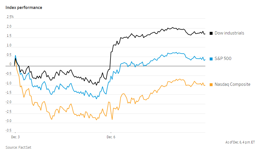 美国股市周一上涨,投资者评估了早期指标,认为Omicron造成的影响可能比之前担心的要轻。比特币和其他加密货币从周末低点小幅上涨。