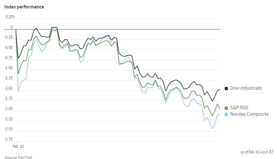 截至收盘,标准普尔500指数下跌1.8%,该指数五分之四的股票在午后交易中下跌。道琼斯工业股票平均价格指数也下跌了1.5%,科技股受到的冲击更大,纳斯达克综合指数下跌了2.1%。