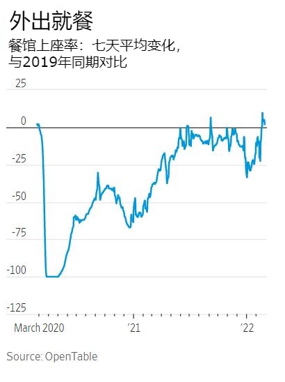 但现在,利维一直在关注美国消费者支出和产出在2月份每周上升的迹象。在线餐厅预订业务OpenTable的报告称,美国餐厅座位数在今年早些时候下滑后,2月份的数字比疫情前的水平还高6%。