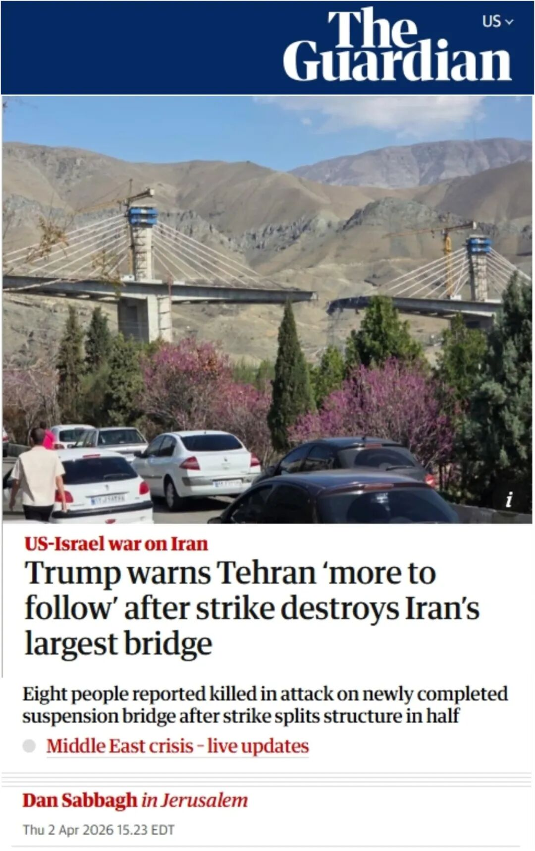 https://www.theguardian.com/world/2026/apr/02/trump-warns-tehran-more-to-follow-after-strike-destroys-irans-largest-bridge