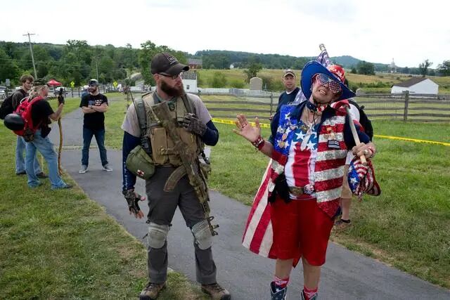 7月4日,包括光头党和自称民兵在内的数百名右翼武装分子前往宾夕法尼亚州葛底斯堡战场,对抗焚烧美国国旗的ANTIFA抗议者。但当他们来到历史悠久的战场时,却没有发现ANTIFA成员的身影。他们被网上的骗局欺骗了。