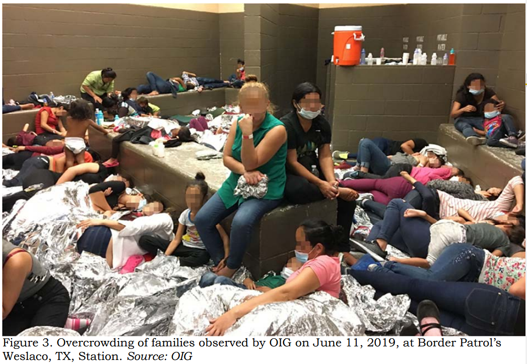 沿边境被拘留的妇女和儿童,通常要在牢房中待上几夜,睡在地板上,通常只有一块铝箔纸似的毯子来保暖。