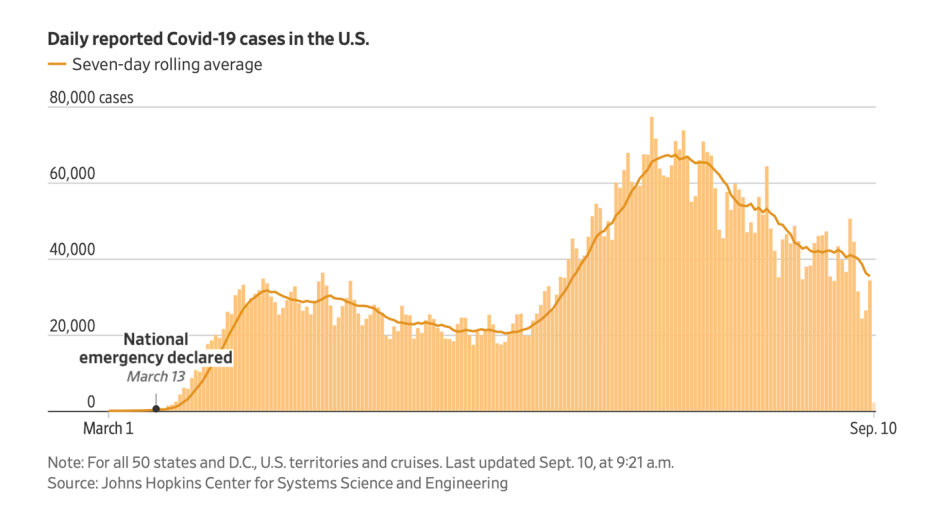 正如公共卫生专家所忧虑的,美国劳工节后疫情可能抬头,尽管测试速度放缓,美国新增新冠病例依然超过了节前几天的总数。9月9日新增病例报告超过了34000个。但这还不是最可怕的。