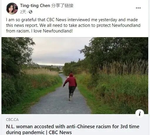 无独有偶,即便在纽芬兰这个并不大的地方,陈婷婷的遭遇也绝非个例,在最近NTV News播放的一段视频中,土生土长的华裔拿加大人也同样受种族歧视之苦。