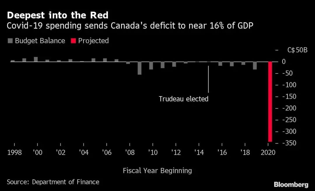 这一计划可能会使加拿大的赤字在今年为应对经济低迷而编入预算的3800亿加元新债务(约占总产出的17%)的基础上,在未来数年时间里都保持在历史上较高的水平。