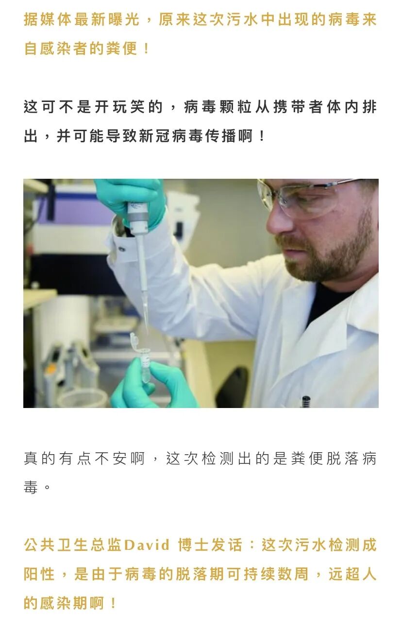 同样是悉尼星尚,在8月的一篇公号文章 “重要通知!!今天,澳洲污水中突然验出新冠病毒!”中,也延续甚至发扬了这个错误。这篇文章再次洗稿于小报每日电讯,报道了Newcastle 污水处理查出了新冠病毒,然而字里行间都指向新冠可以通过污水传播。
