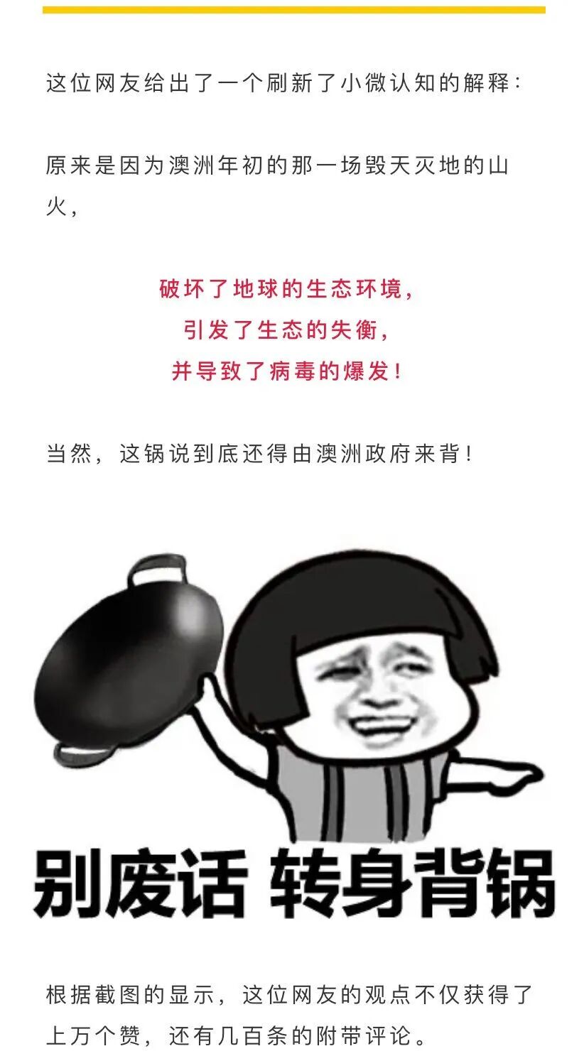 如果说援引每日邮报只是忽略了均衡性报道,起码能提供一方有价值的看法,墨尔本微生活在7月11号的一篇公号文章则援引了毫无价值的信息。这篇名为:维州216例!新冠未消,不明肺炎又现!而这场席卷全球的灾难,竟然是由澳洲引起的?的文章首先复述了人民日报关于哈萨克斯坦出现不明原因肺炎的消息。这个消息本身是对哈萨克斯坦当地新闻的误读,我们在“哈萨克斯坦肺炎怎么就传成了不明”一文中已经做了梳理。作为公号,如果仅仅引述这个新闻也不能被太过苛责。虽然这样的操作没有起到严肃新闻应有的核查职责,但毕竟非常多高级别的媒体也不加分辨地转发了这则新闻。但墨尔本微生活并没有止步于转发哈萨克斯坦不明肺炎的消息,还更近一步为肺炎的爆发找到了原因:澳洲的山火破坏了地球生态平衡,导致了病毒爆发。