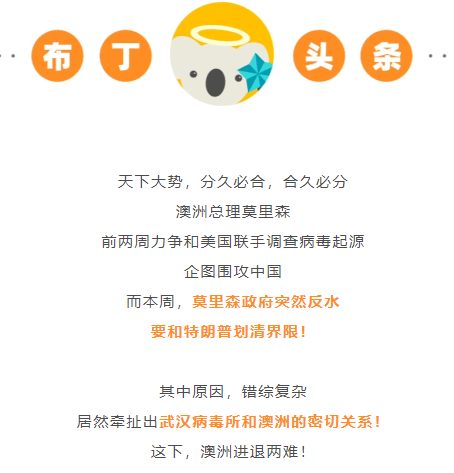 这篇名叫:我们被美国坑了”!澳洲突然对美国翻脸,开始帮中国了?武汉病毒所和澳洲居然牵出惊天大瓜!的公号文章写到,五眼联盟的一份调查报告发现澳洲卷入了和新冠相关的病毒研究,为了不引火烧身,不得不立刻和美国划清界限,不再力挺美国坚持调查。