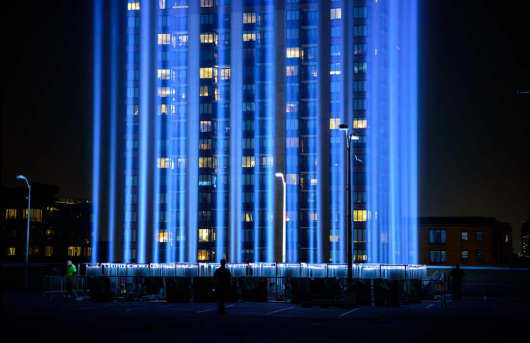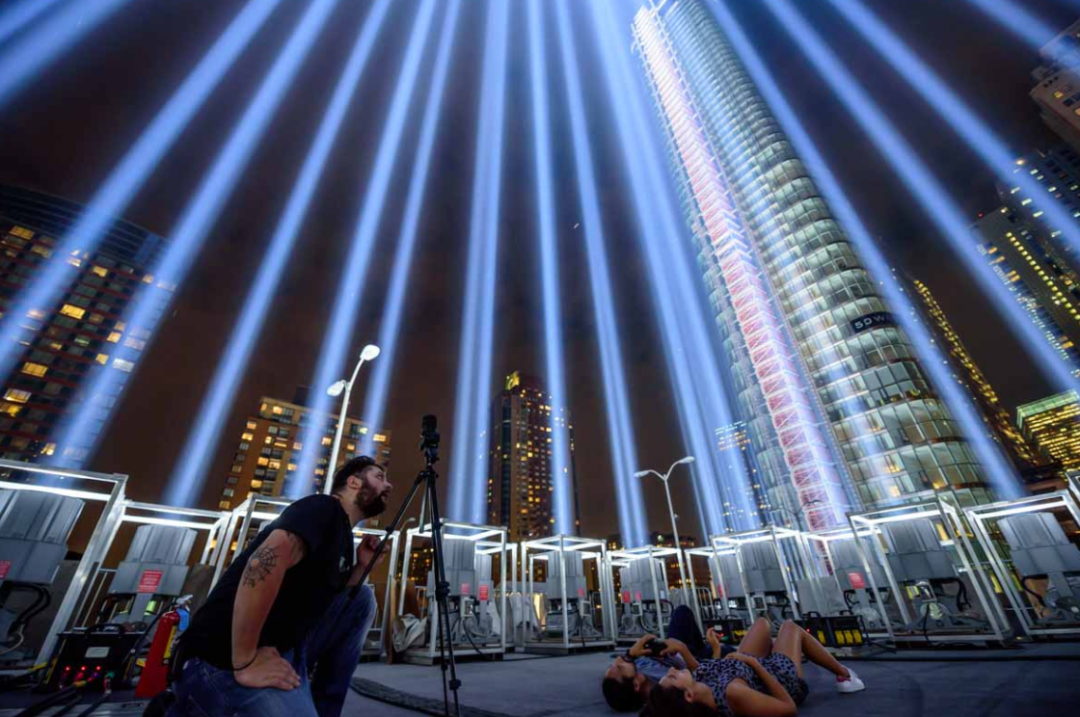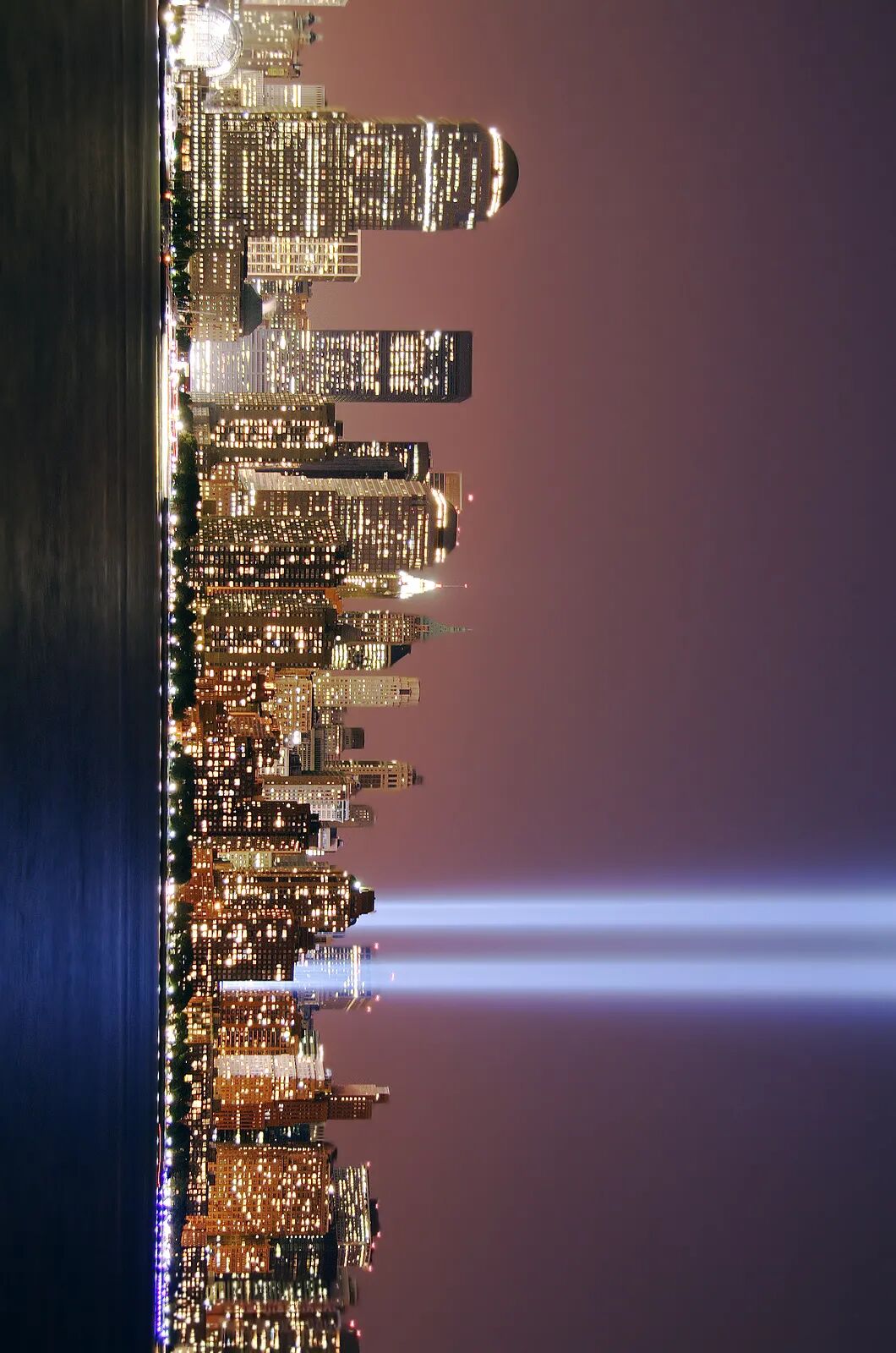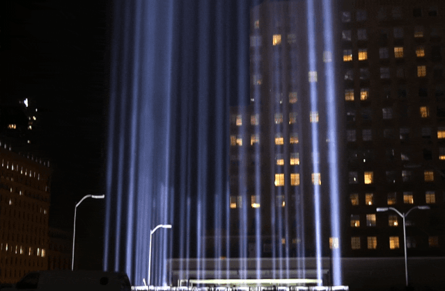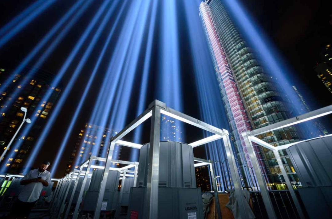 这两道光柱,复活了2001年9月11日被基地组织袭击摧毁的双子塔的形状,也代表着在那场袭击中不幸消失的人。