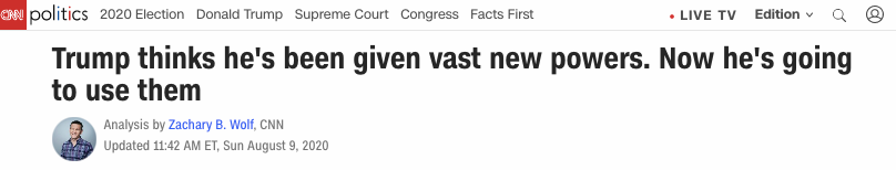 在周六早些时候的新闻发布会上,川普一再指责民主党人利用经济刺激法案试图窃取他的选举。随着冠状病毒继续在全国蔓延,并感染了500万美国人,他本可以在公共场合强制戴口罩这一点上使用行政权力,但他不愿使用——尽管这可能对选举产生的影响最大。