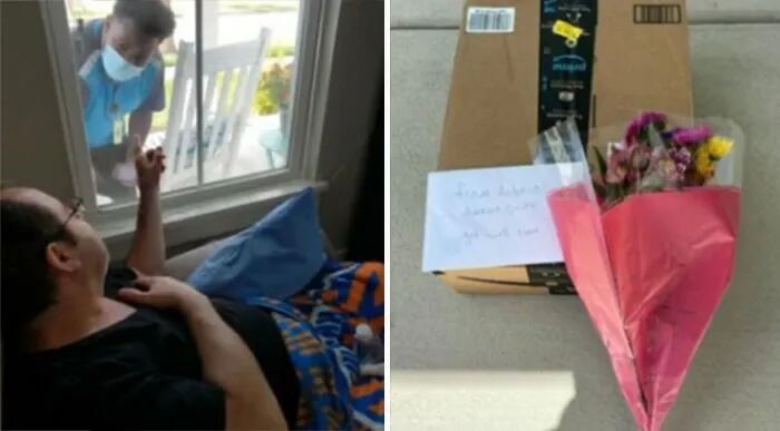房主夫妇看见了鲜花和卡片之后,非常吃惊。一个素不相识的快递小哥,花费时间、金钱和精力,特意去买了鲜花和卡片,并写了暖心的话。这让他们非常感动。