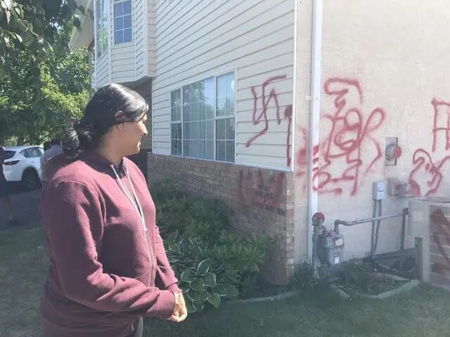 这位23岁的年轻人告诉记者,“这里有破坏行为发生,还有仇恨犯罪。他们在这里画的东西代表了很多仇恨和种族主义,让我们感到恐惧。有人来到我们家,而我们的父母在里面,这说明仇恨是真实存在的。”